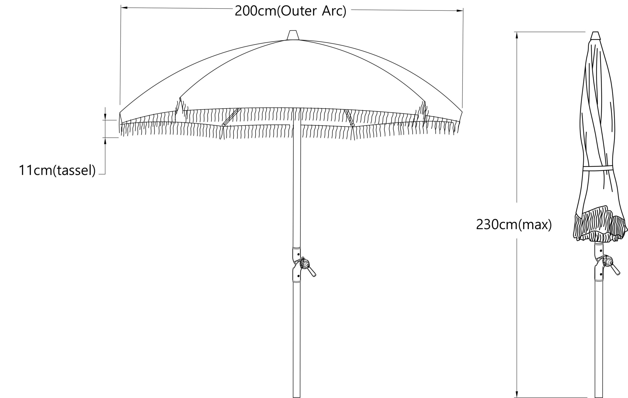 The chic tassel fringe adds a touch of elegance, while the durable timber pole and fiberglass ribs ensure sturdy support. This versatile beach umbrella easily folds for storage and tilts to adjust the shade angle, offering maximum comfort. Its fluted spike securely anchors it in the sand, but it also looks great in your garden or patio area. Plus, it comes with a matching carry bag for easy transport, making it ideal for on-the-go or home use.